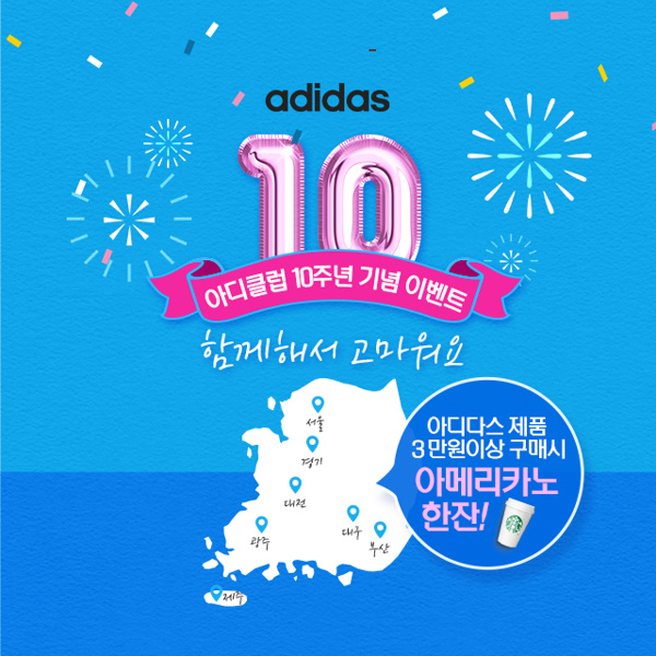 그동안 보내주신 관심으로 아디다스 공식 멤버십 아디클럽이 10주년을 맞이하였습니다.